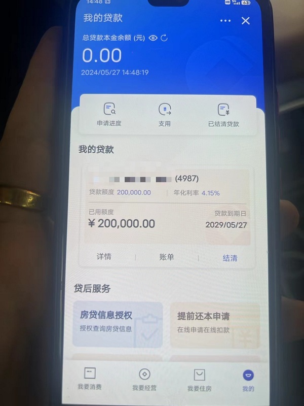 吴总农村户口,因为急需用钱,经过我们跟银行的沟通协商,成功给他办理了一笔20万的贷款!利息3厘左右,先息后本5年还款方式!恭喜吴总!!